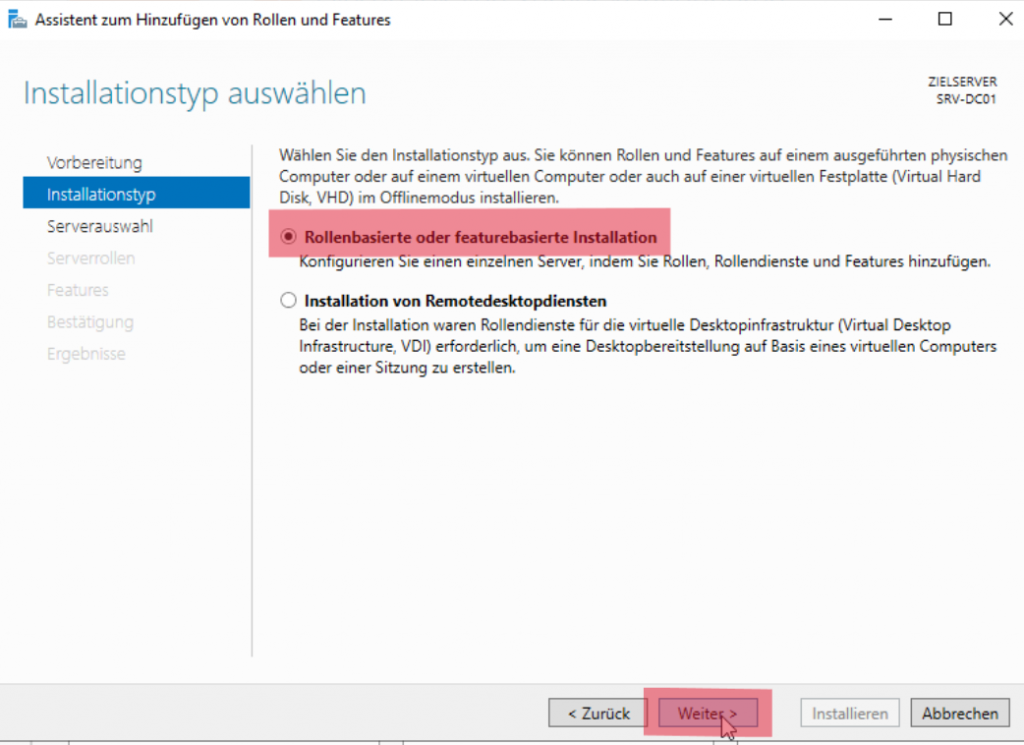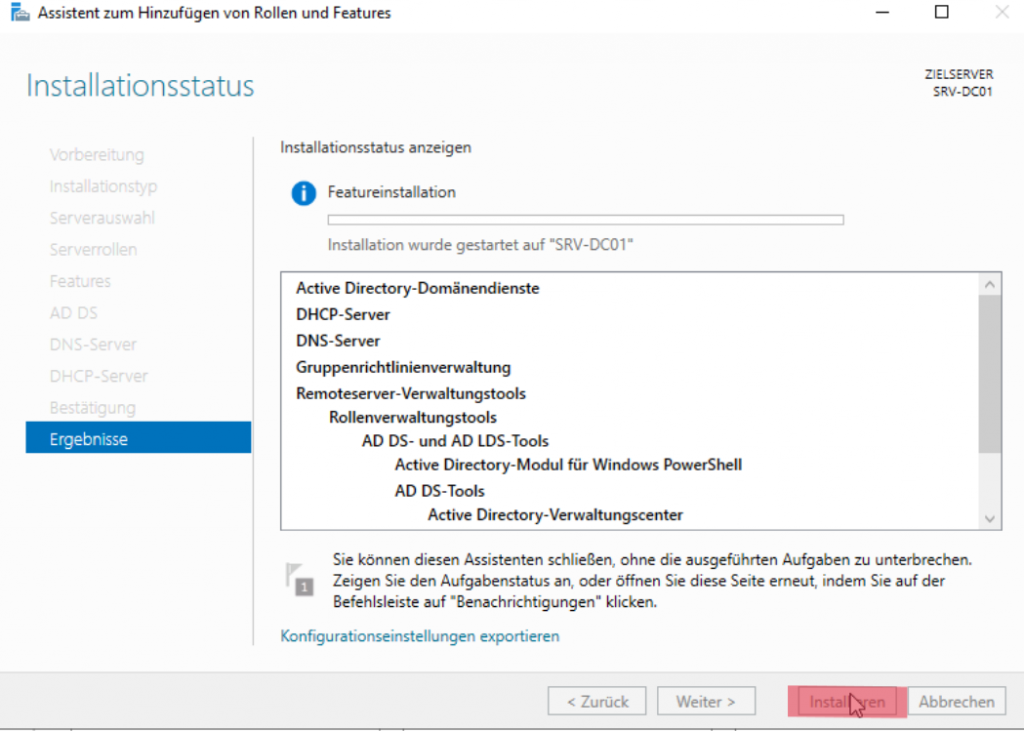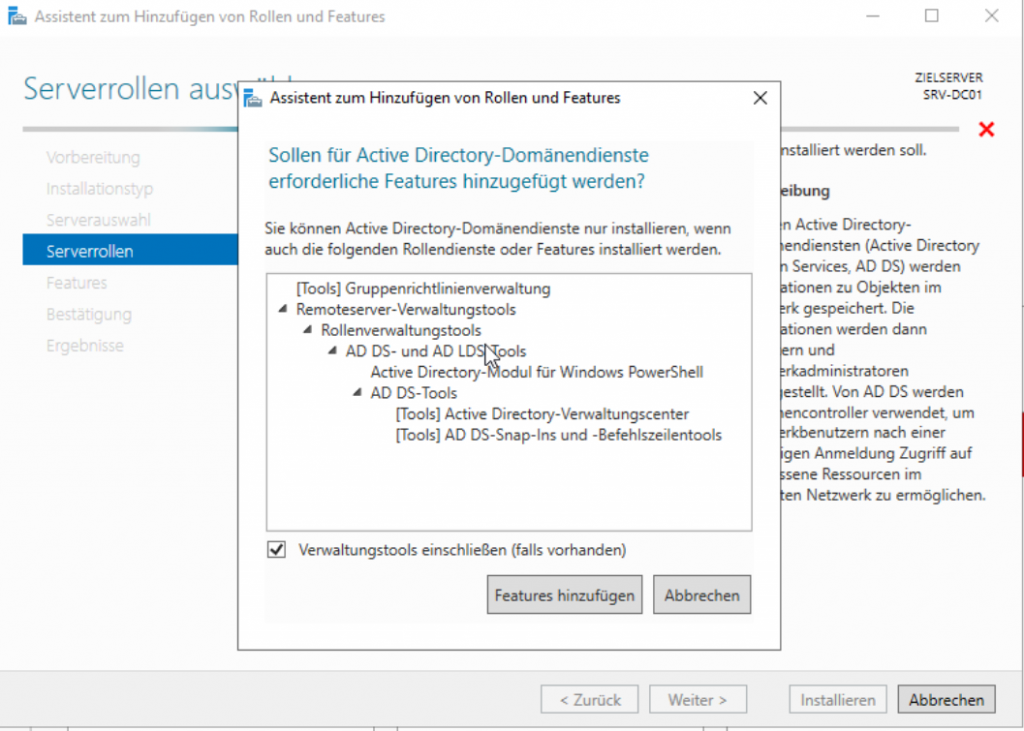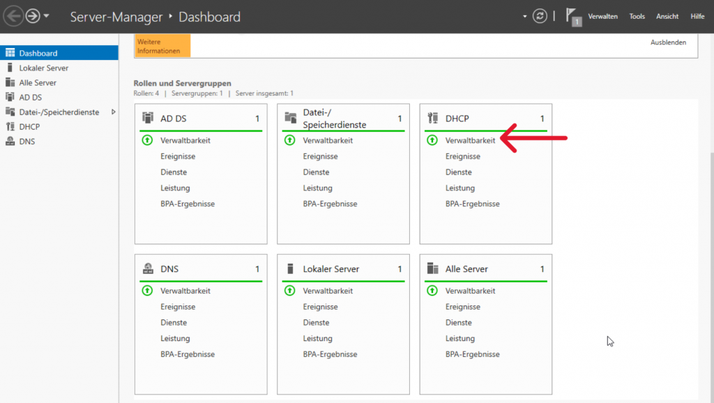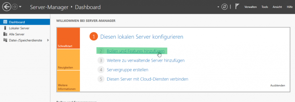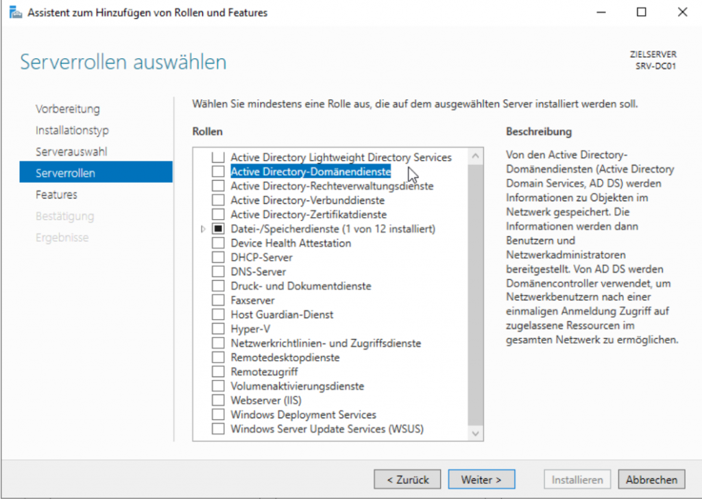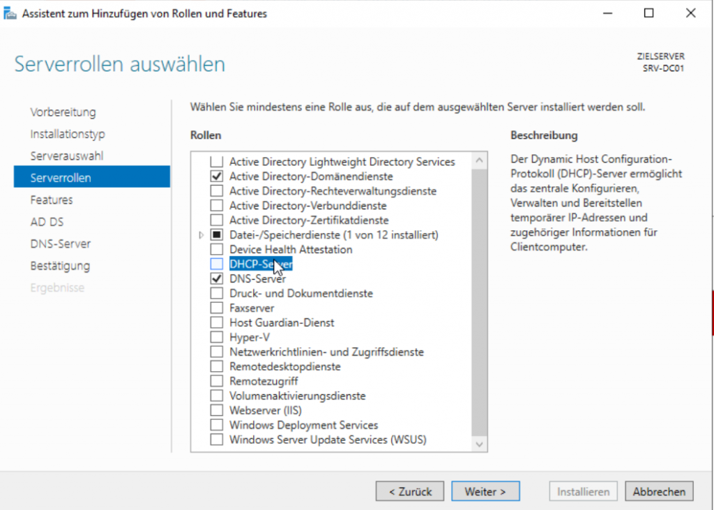 Die Installation von Rollen ermöglicht dem Server, spezifische Funktionen auszuführen: