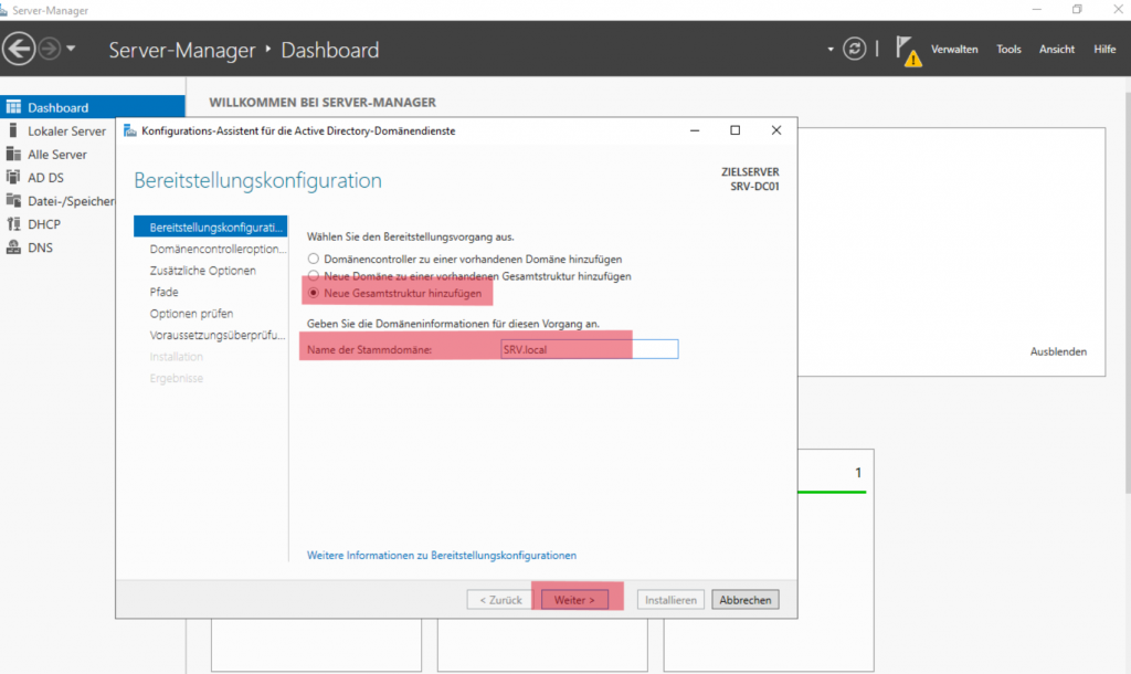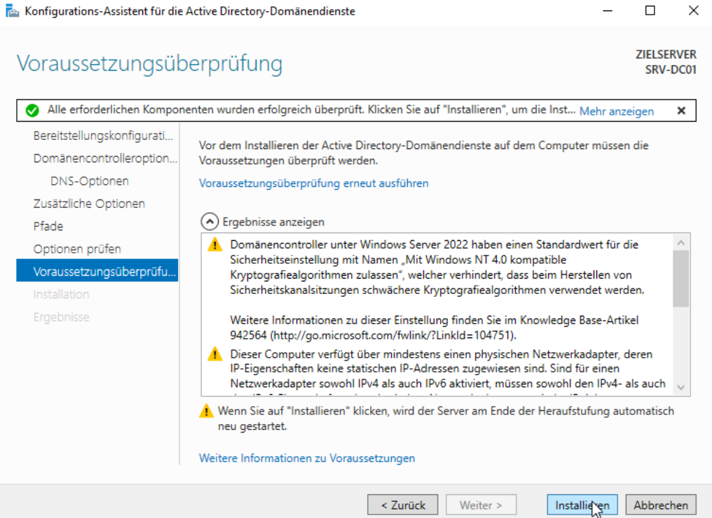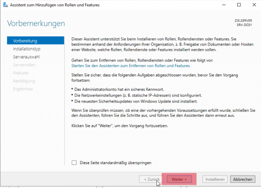 - Ein eindeutiger Name ist für die spätere Einrichtung von Active Directory unverzichtbar