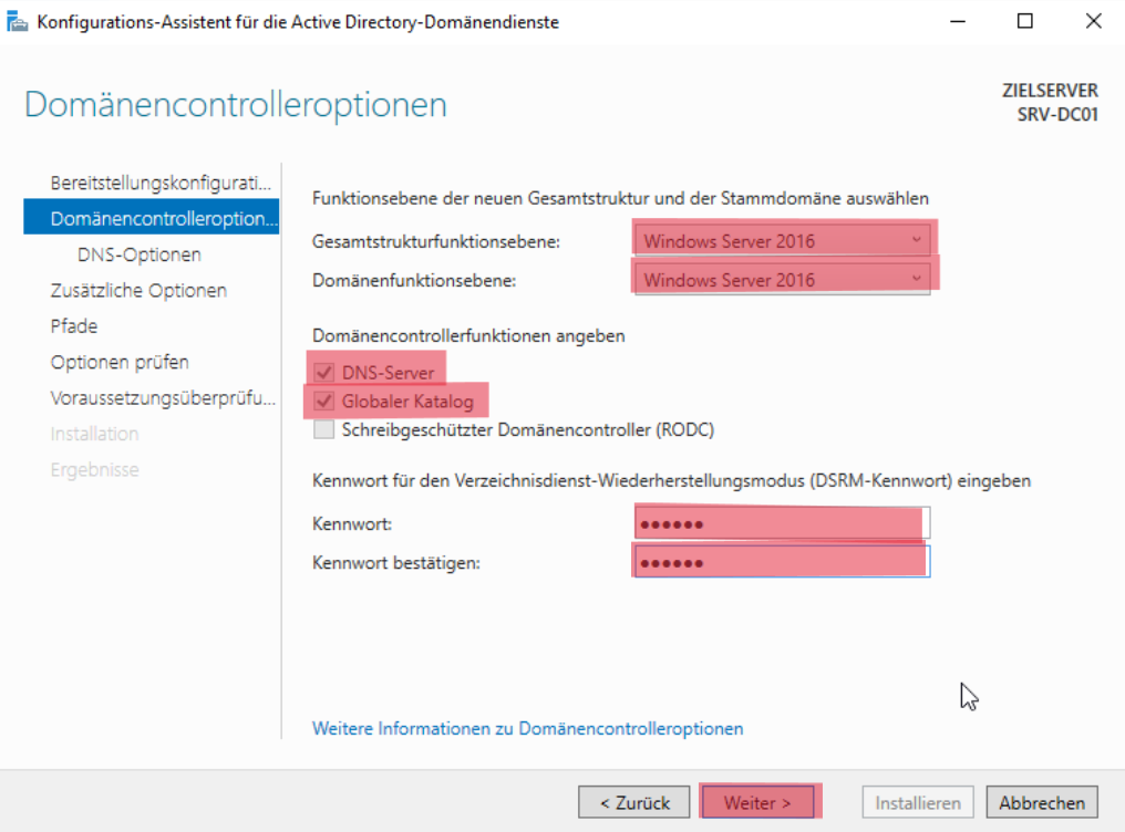 (Domänenadmin) - Passwort: Passwort des Domänenadmins