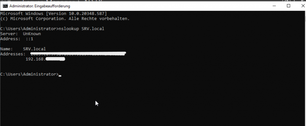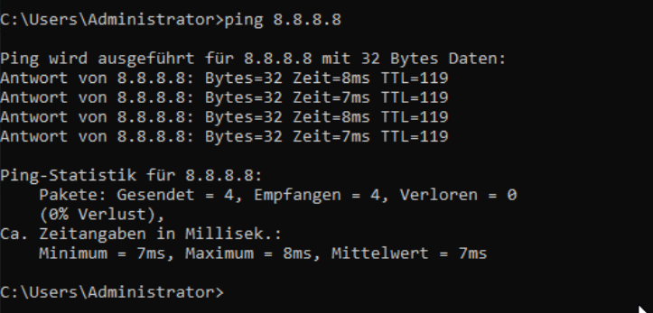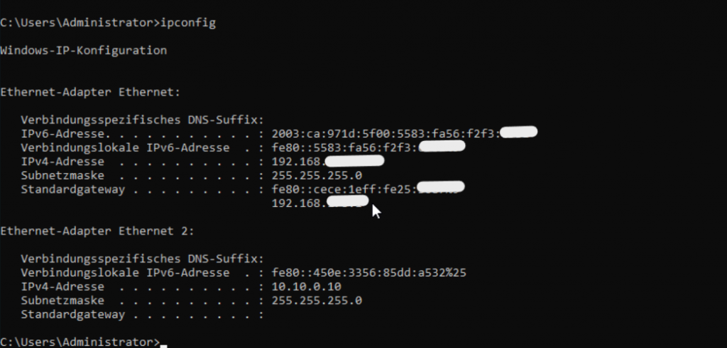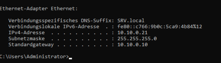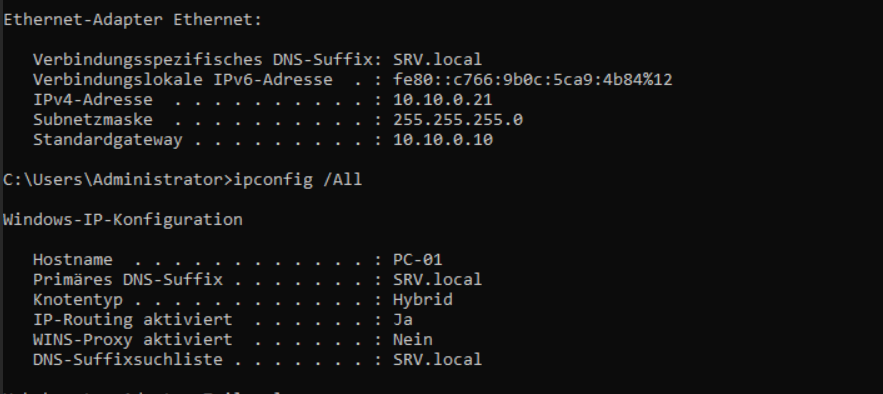Nachdem der Client erfolgreich in die Domäne aufgenommen wurde, sollte überprüft werden, ob alle relevanten Dienste (DNS, DHCP, Gateway, Gruppenrichtlinien) korrekt arbeiten.