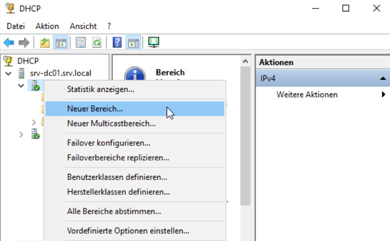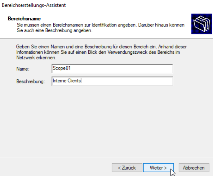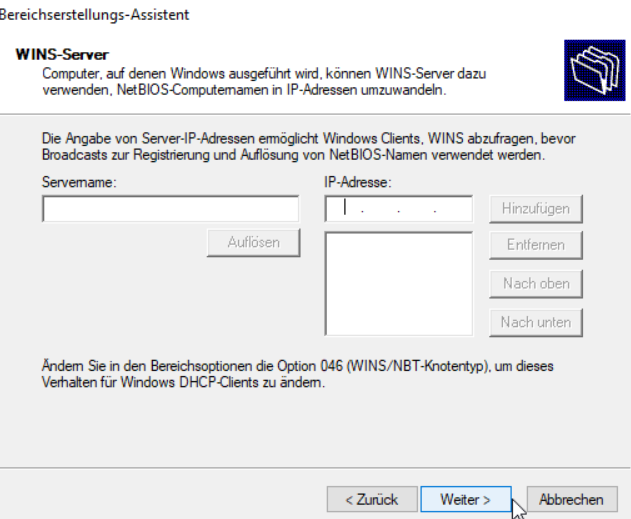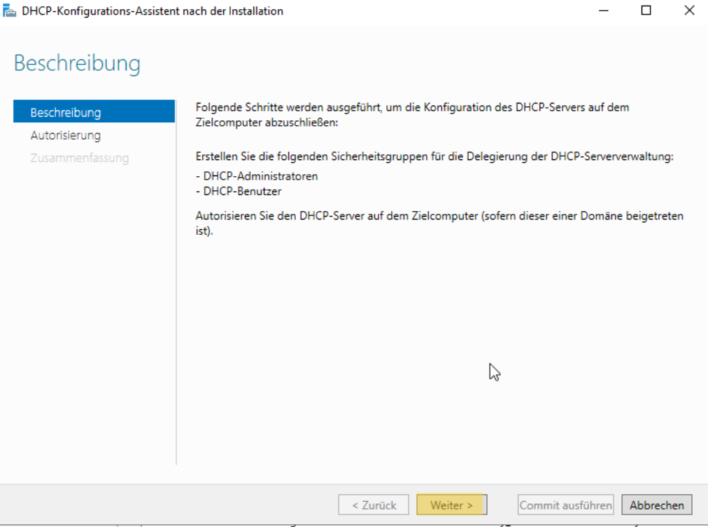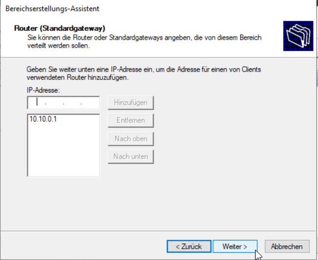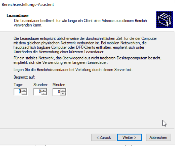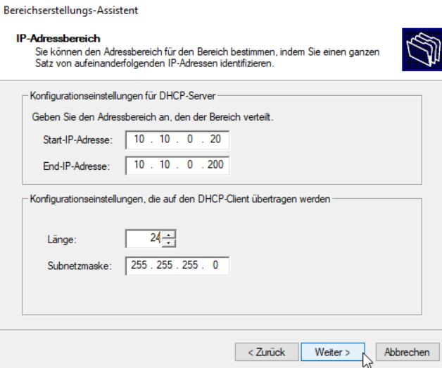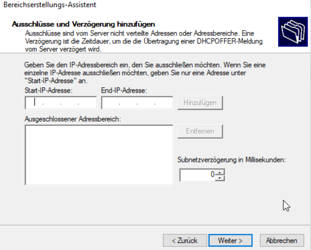 - Vorbereitung für DHCP-Server, um Clients automatisch IP-Adressen zuzuweisen