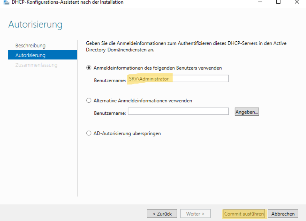 - Mit Domänenadministrator oder Domänenbenutzer anmelden: