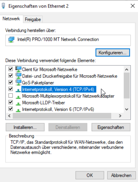 - DNS: 8.8.8.8 oder 1.1.1.1