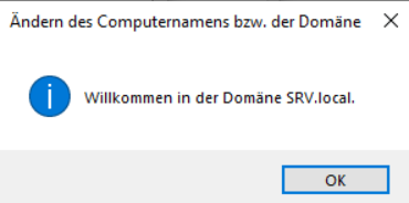 - Nach erfolgreicher Anmeldung erscheint eine Bestätigung, dass der Computer der Domäne beigetreten ist.