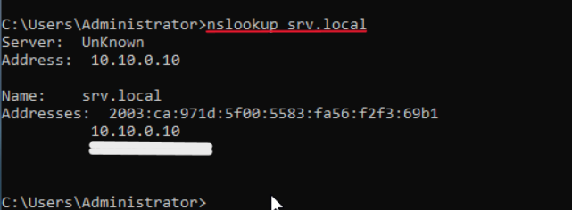 funktioniert. - nslookup löst den Domaincontroller korrekt auf.